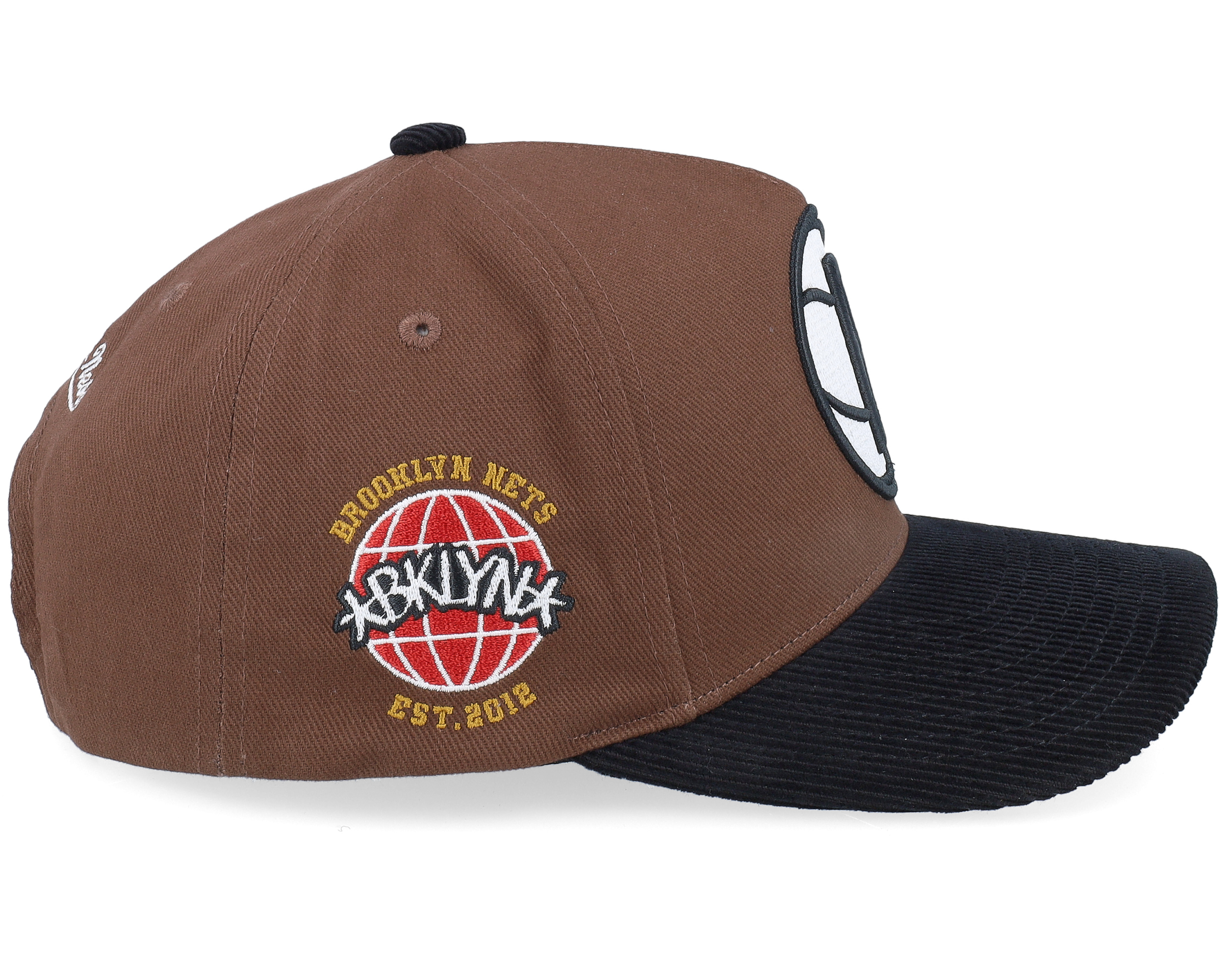 Brooklyn Nets Brown/Black Corduroy Visor/Pink Under Visor A-frame Adjustable